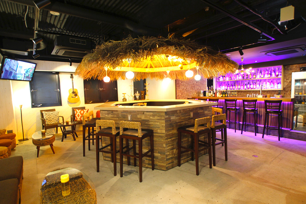 店内奥に配置されているこのスペースでは店舗自慢のシーシャ小屋とバーカウンターがあり、